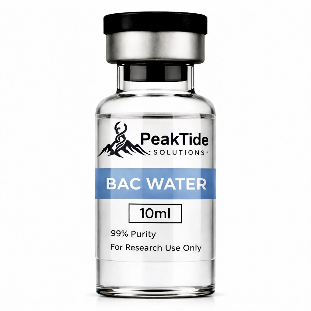 Reconstitution Water, commonly referred to as BAC Water, is a sterile laboratory supply used in research environments for dissolving or reconstituting lyophilized compounds. It is commonly utilized in laboratory procedures requiring controlled preparation of research compounds prior to experimental analysis.
